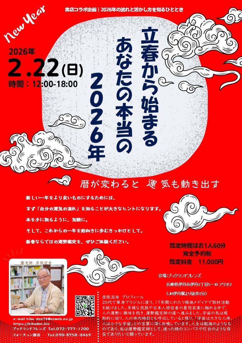 - 2/22(日) 彦阪泥舟さん運勢鑑定会「立春から始まるあなたの本当の2026年」