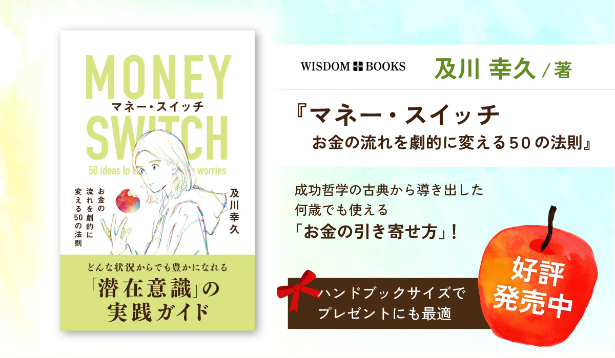 及川幸久さんのベストセラー『ザ・スイッチ 世界一わかりやすい潜在意識の使い方』、待望の「お金バージョン」が、WISDOM BOOKS より発売になります!